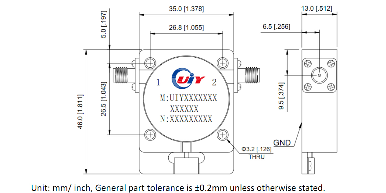 UIYCI3546A600T800SF | 600-800 | 0.5 | 18 | 1.3 | 100 | 100 | SMA-F | |