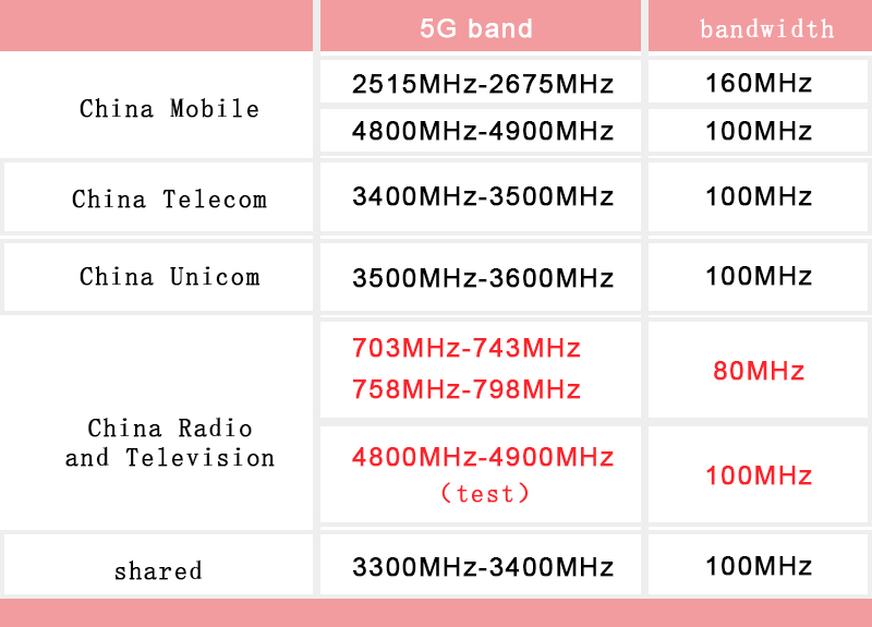And China Radio and Television has obtained the 703-743 / 758-798MHz band, 40MHz each for upstream and downstream, total 80MHz bandwidth, Instead of the 30M * 2 bandwidth that existed in the industry before. This means, China Radio and television can make full use of more low-frequency high-quality resources, To improve the peak rate of 5G network and user experience, Speed up the 5G construction process.