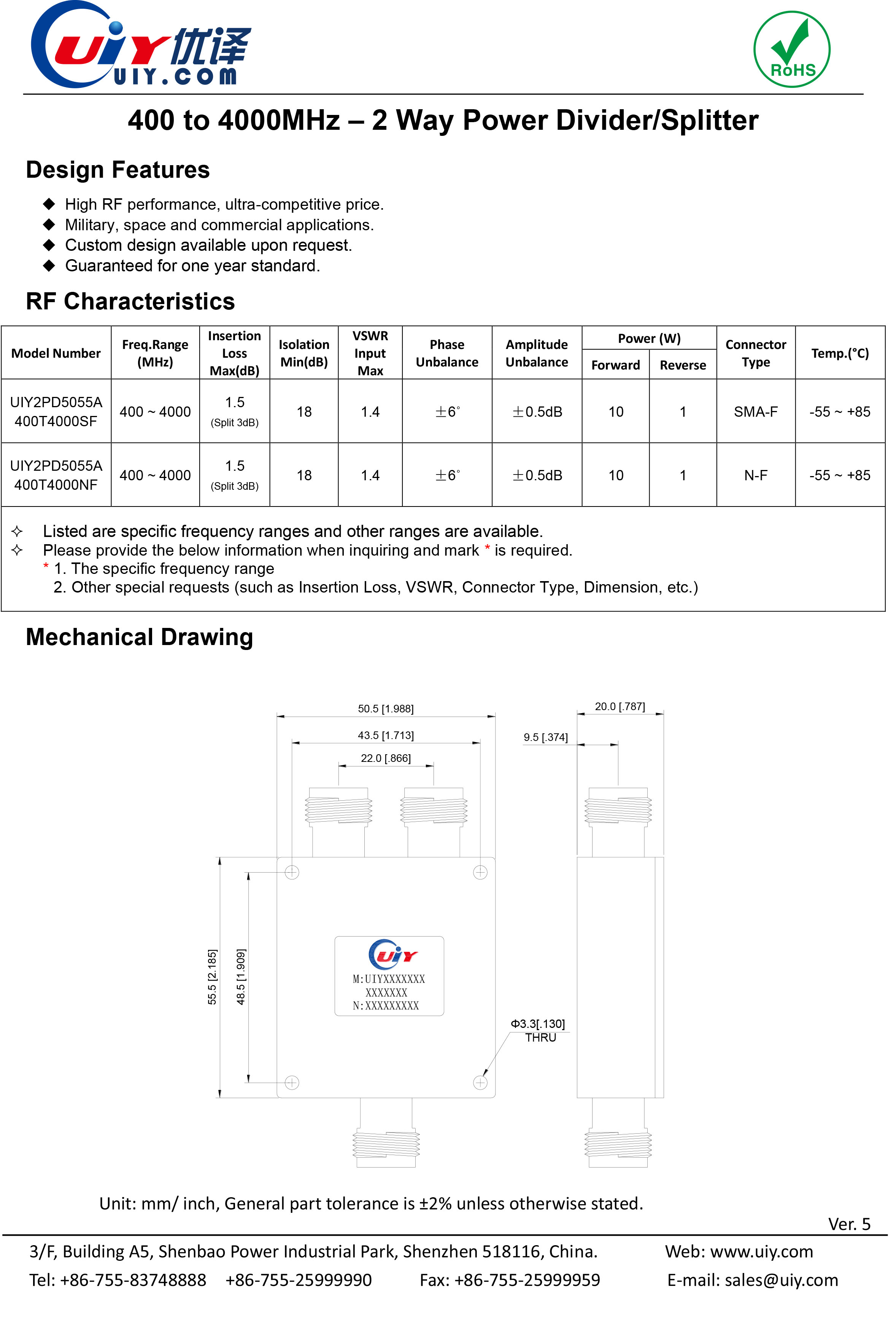 主页热门产品二路功分器 频率范围:400~4000MHz